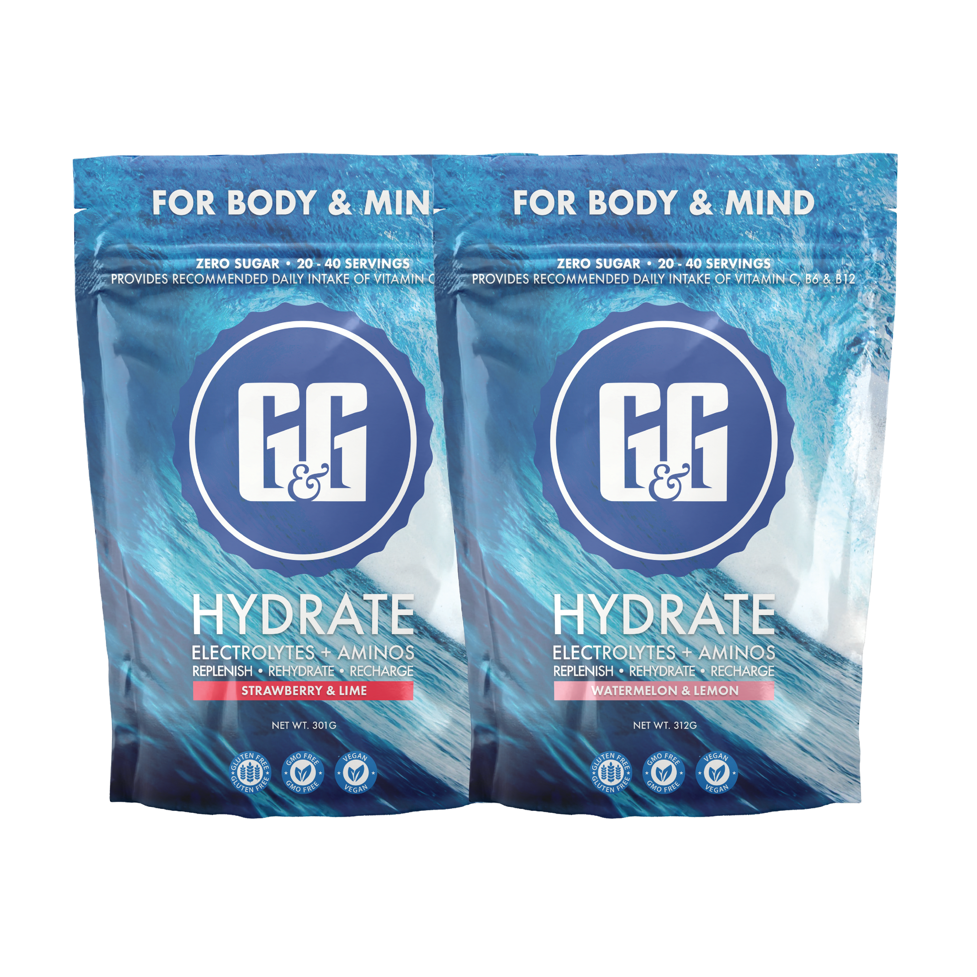 Rehydrate with G&G Hydrate Duo - Watermelon Lemon Wave & Strawberry Lime Burst.